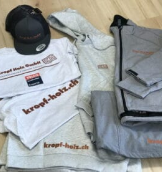 Entdecken Sie hier einige Beispiele von individuell bedruckten oder bestickten Textilien, die wir für Firmen, Vereine und Events umsetzen durften. Ob T-Shirts, Poloshirts, Hoodies oder Jacken – jedes Stück wird mit Sorgfalt und bis zum Detail veredelt.