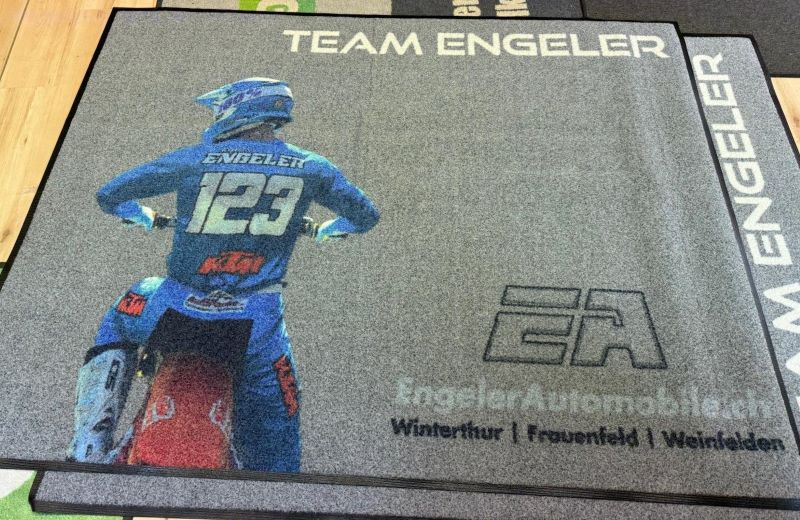 Ob als personalisierte Eingangsmatte mit Logo, auffälliger Messeteppich oder dekorative Bodenwerbung im Laden – bedruckte Teppiche ziehen Blicke an und schaffen Wiedererkennung.